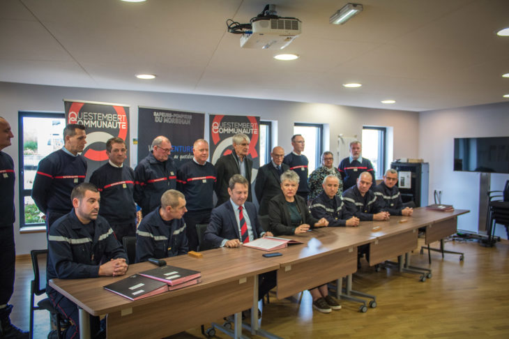 Vendredi 22 novembre, une convention a été signée en faveur de 6 agents de Questembert Communauté, également sapeurs-pompiers volontaires. La convention a été signée par Marie-Claude Costa Ribeiro Gomes, Présidente de Questembert Communauté et Gilles Dufeigneux, Président du CASDIS. Elle définit le cadre juridique visant à faciliter la mise à disposition des agents pour leurs