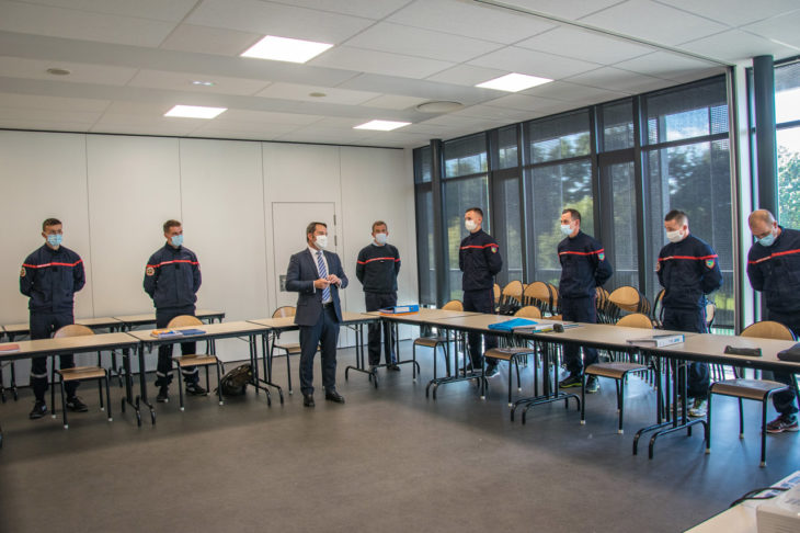 Vendredi 9 octobre, Gilles Dufeigneux, Président du Conseil d’Administration du SDIS et le Contrôleur général Cyrille Berrod, directeur départemental, se sont rendus au Centre de Secours de Lorient pour rencontrer les stagiaires de la FIP.