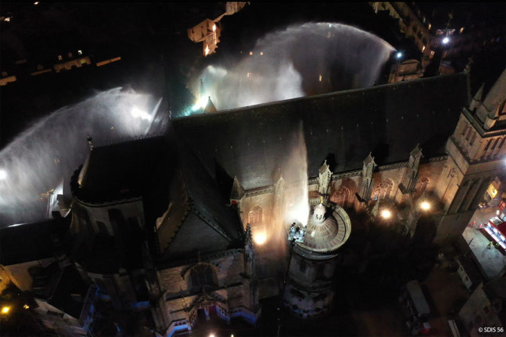 Le Service Départemental d’incendie et de secours du Morbihan, en collaboration avec la Ville de Vannes, Golfe du Morbihan Vannes Agglomération, la Police Nationale et la Croix-Rouge, a réalisé un exercice d’incendie à la Cathédrale Saint-Pierre de Vannes.